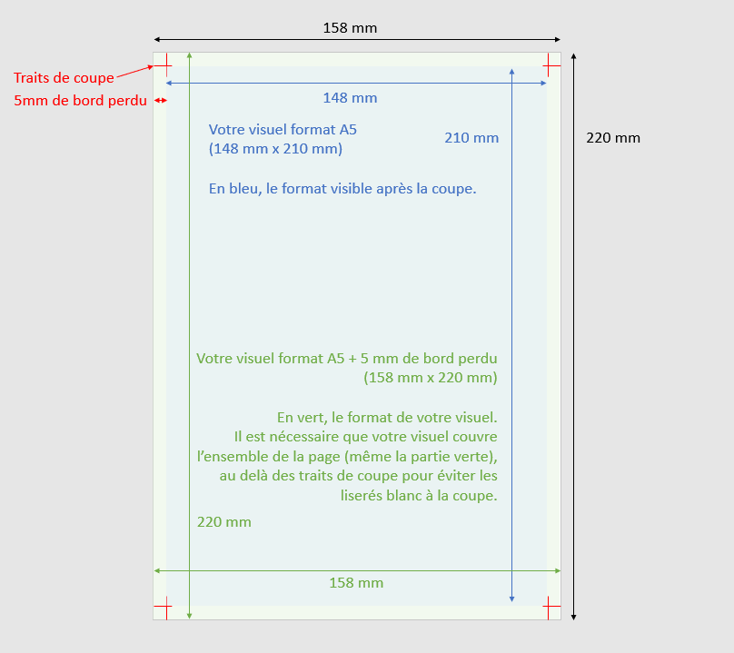 Format A5 (148 x 210 mm), fichier PDF HD 300 dpi avec repères de coupes + bord perdu de 5 mm.
